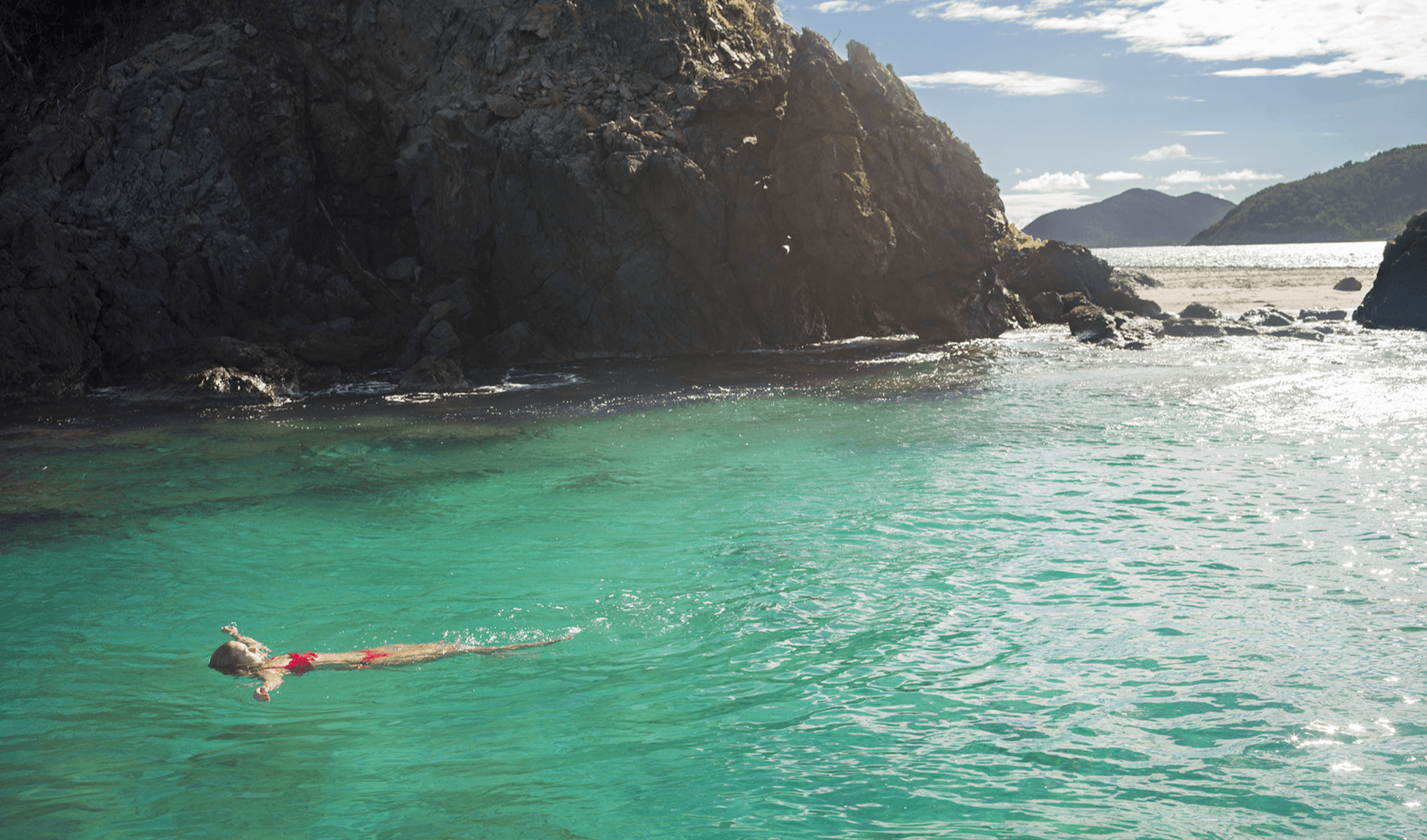 Midway stops on the hike to Chicken Rock, these two secluded beaches, nestled in Guana’s north-western bay, are unique spots for snorkeling and shelling.